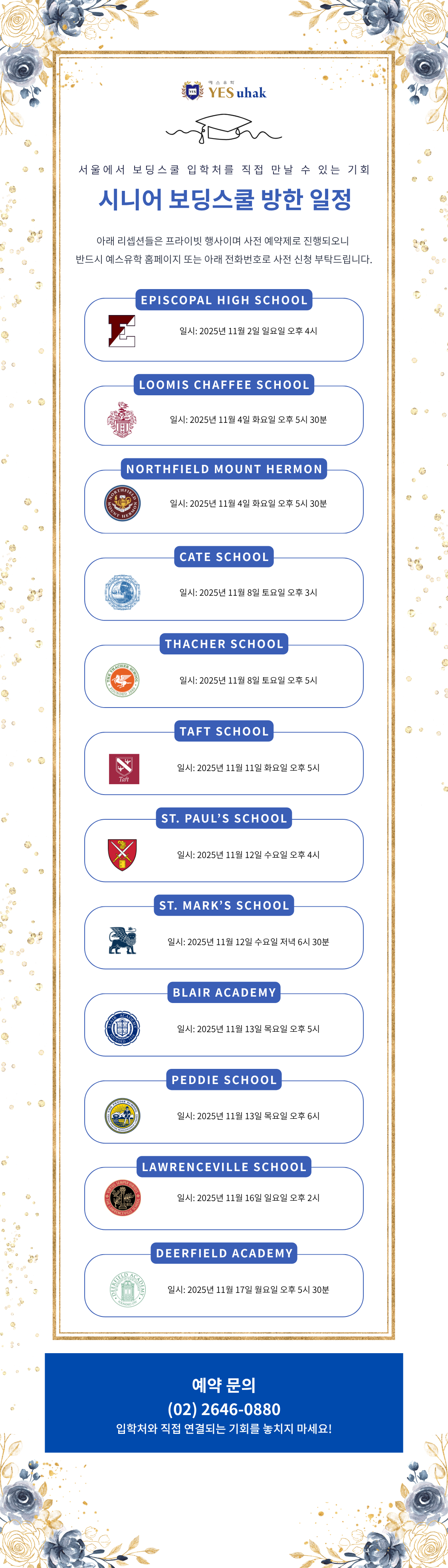 2025년 미국 시니어 보딩스쿨 입학처장 방한 일정