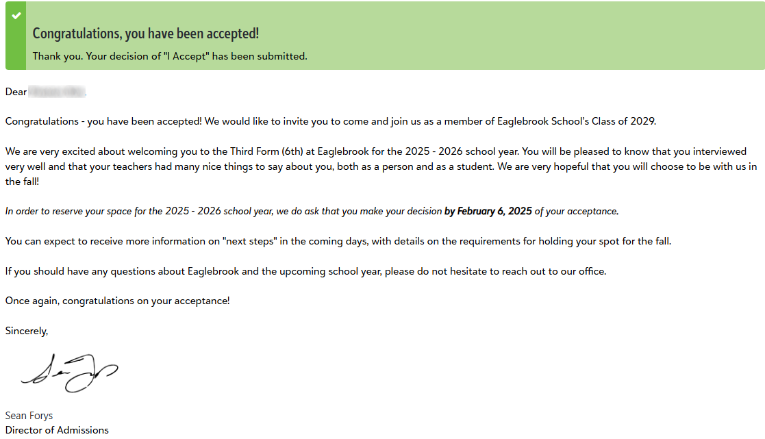 김○○ 학생 Eaglebrook School 합격을 축하드립니다.