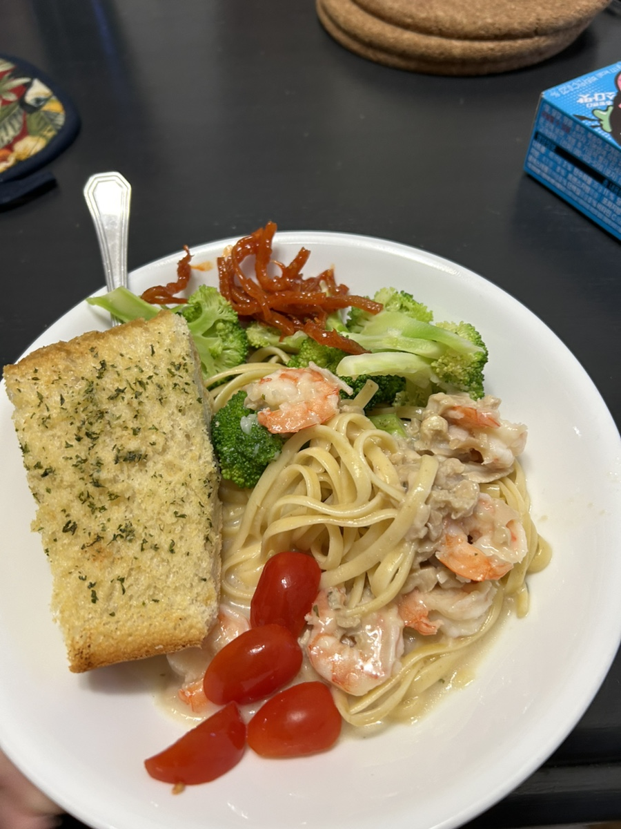 홈스테이 엄마께서 만들어주신 김밥이에용~ 그리고 이건 저녁밥으로 먹은 파스타!!