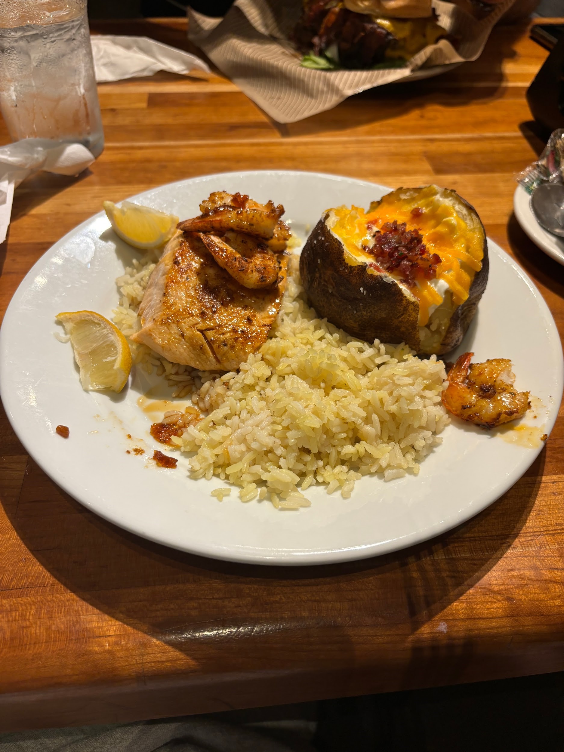 나간 김에 저녁은 외식을 했다. 나는 구운 연어를 시켜서 먹었는데 맛있었다.
