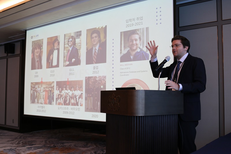두 학생의 스피치가 끝나고, 오전 마지막 순서로 예스유학 명문보딩팀의 윌리엄 미한 컨설턴트가 '왜 그토록 많은 학생들이 미국 보딩스쿨을 선택하는지'에 대하여 이야기 하였습니다.