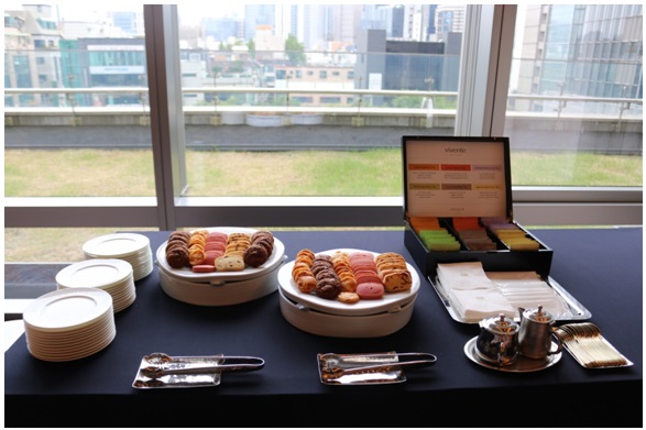 행사 당일, 참석자들이 도착하자 예스유학 임직원들이 반갑게 맞이하며 지정석으로 안내했고, 행사장인 Royal Chamber에는 음료와 다과가 준비되어 있어 편안한 분위기 속에서 가족과 이야기를 나누는 모습이 곳곳에서 보였습니다.
