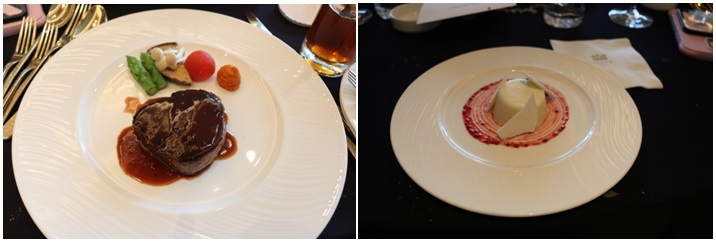 점심 시간에는 도미 세비체, 은대구 구이, 안심구이 등 호텔 코스 요리가 제공되었습니다.