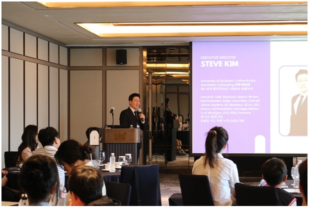 마지막으로, 예스유학 김동민 총괄 본부장이 미국 대학 입시의 전반적인 구조와 최신 입시 트렌드를 소개하며 행사를 마무리했습니다.