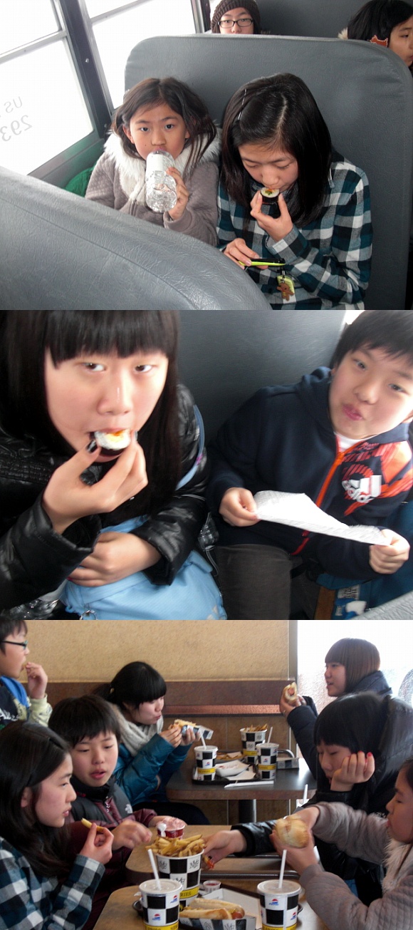 김밥 도시락과 여행 중의 음식을 맛있게 먹는 이쁜 우리 친구들^^