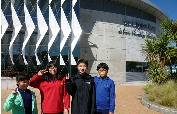 뉴질랜드 뉴브라이튼 도서관 앞에서 정빈이 모습^^