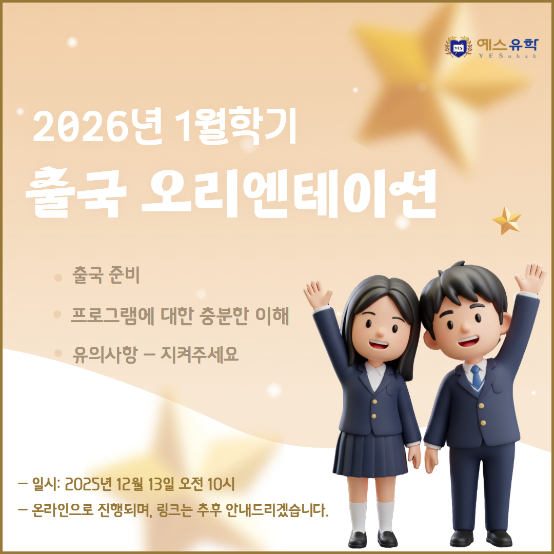 미국 공립/사립 교환학생 출국 전 오리엔테이션 안내 (2025.12.13 토요일)