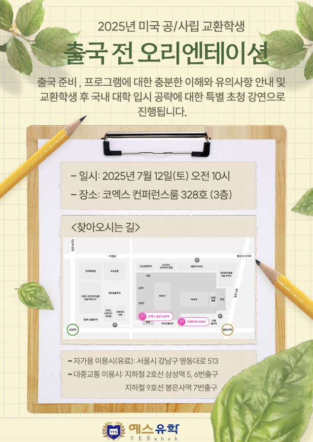 미국 공립/사립 교환학생 출국 전 오리엔테이션 안내 (2025.07.12 토요일)