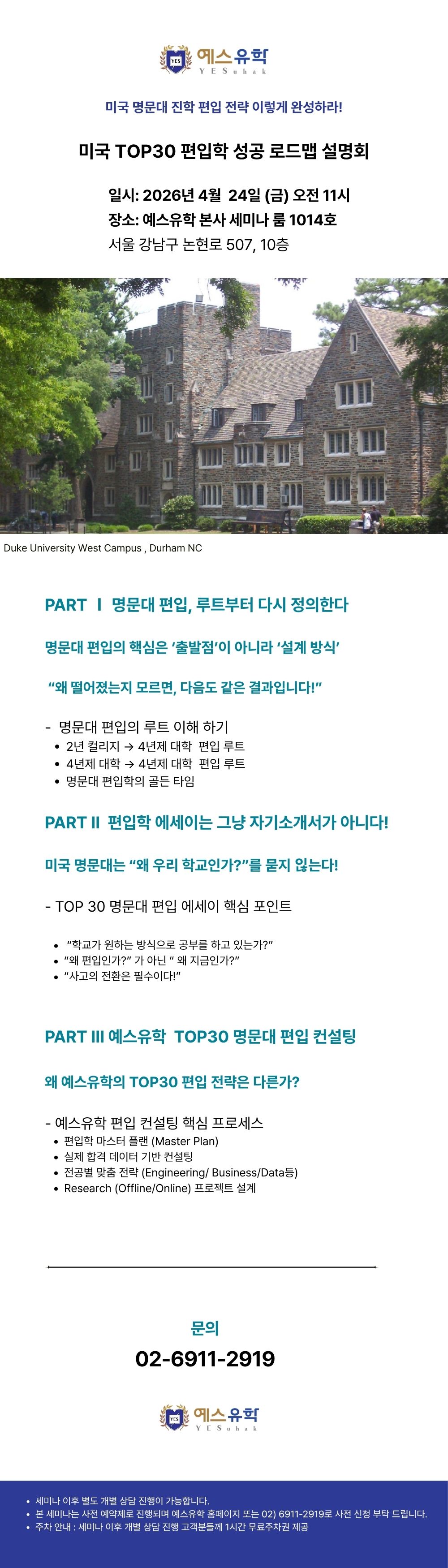 [편입학] 미국 TOP30 명문대 편입 성공 로드맵 설명회
