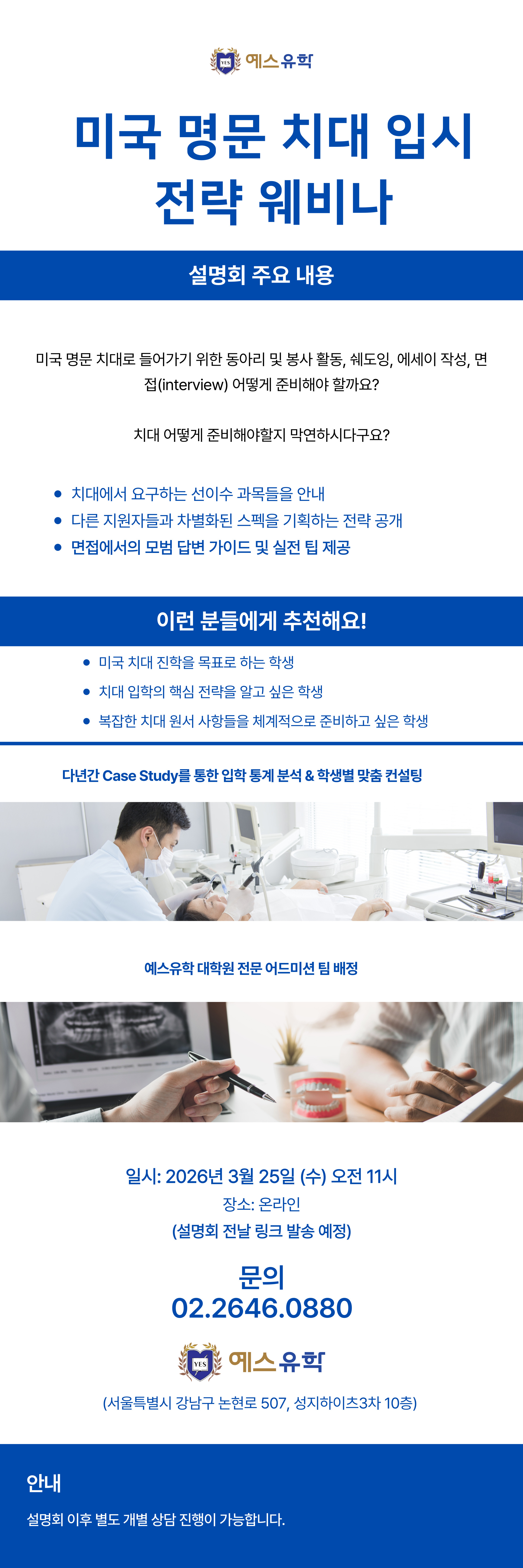 [대학원] 미국 명문 치대 입시 전략 웨비나