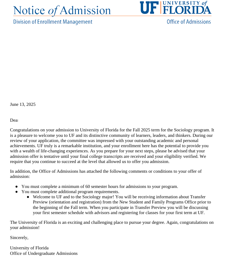 박OO 학생의 University of Florida 합격을 축하드립니다.
