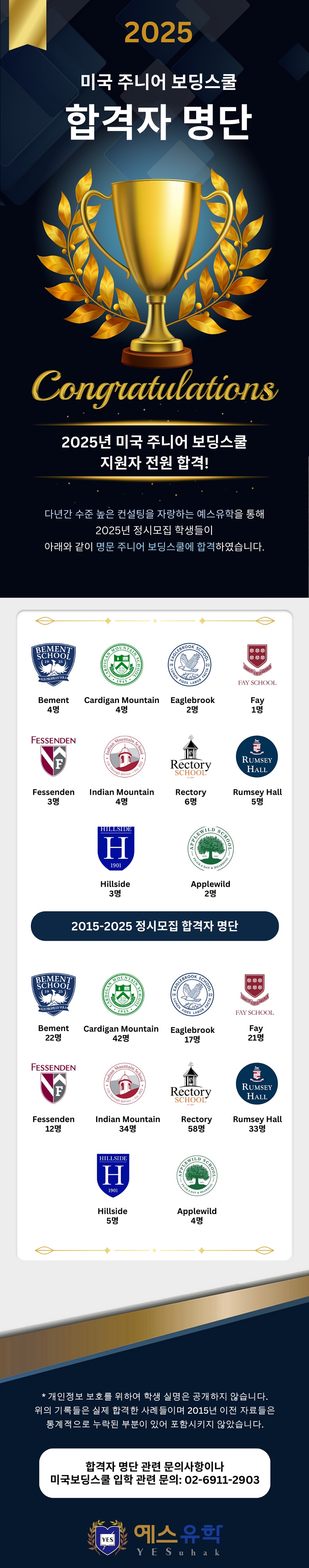 2025년 "축 합격" 주니어 보딩스쿨 합격자 발표