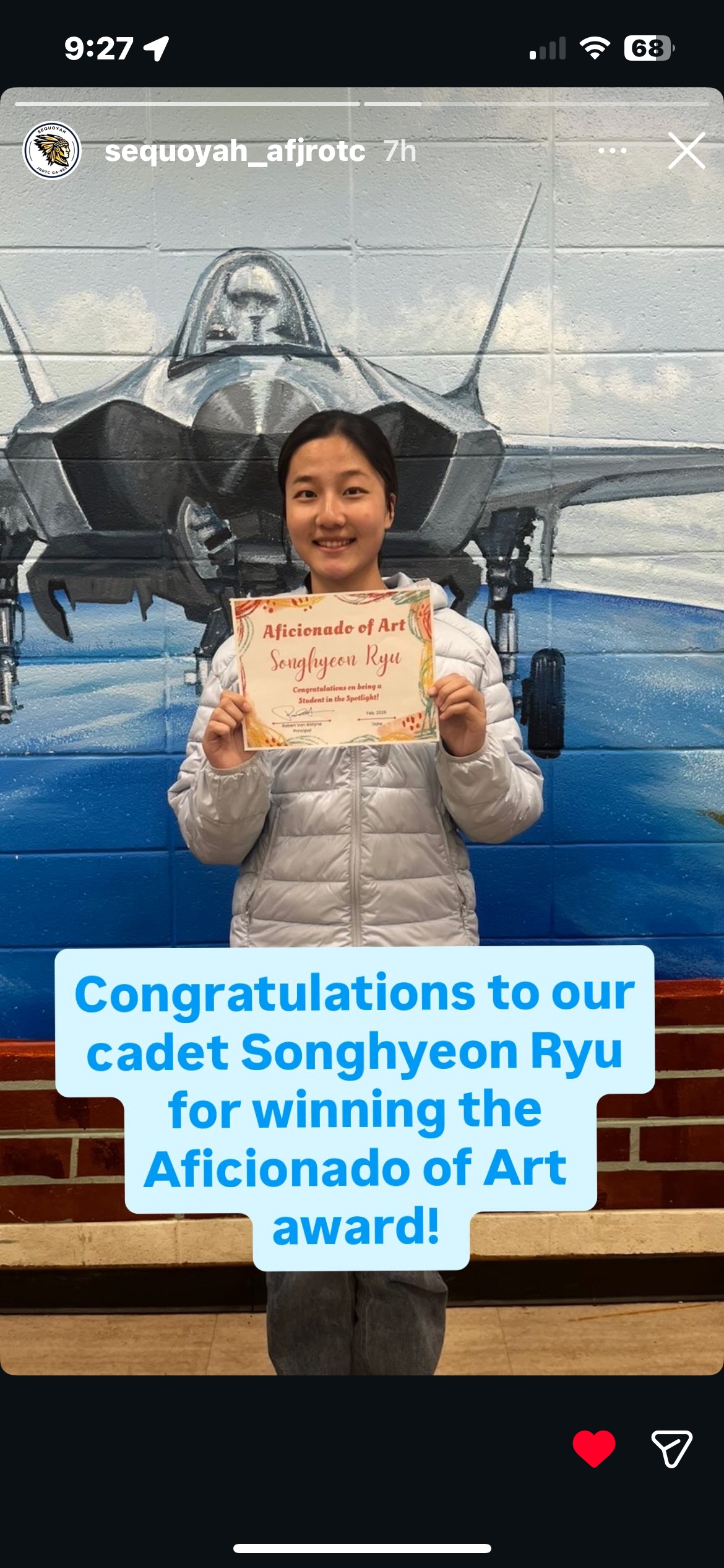 계속해서 더 멋있는 작품을 만들기 위해 매번 노력했던 결과 선생님께서 학교 “스포트 라이트“ 주셨습니다.