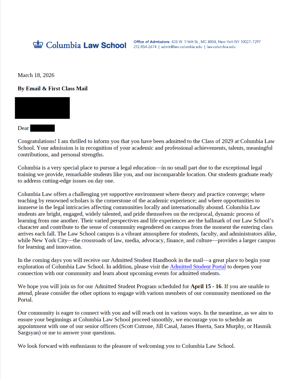 신**님 Columbia Law School -J.D 합격 축하드립니다.