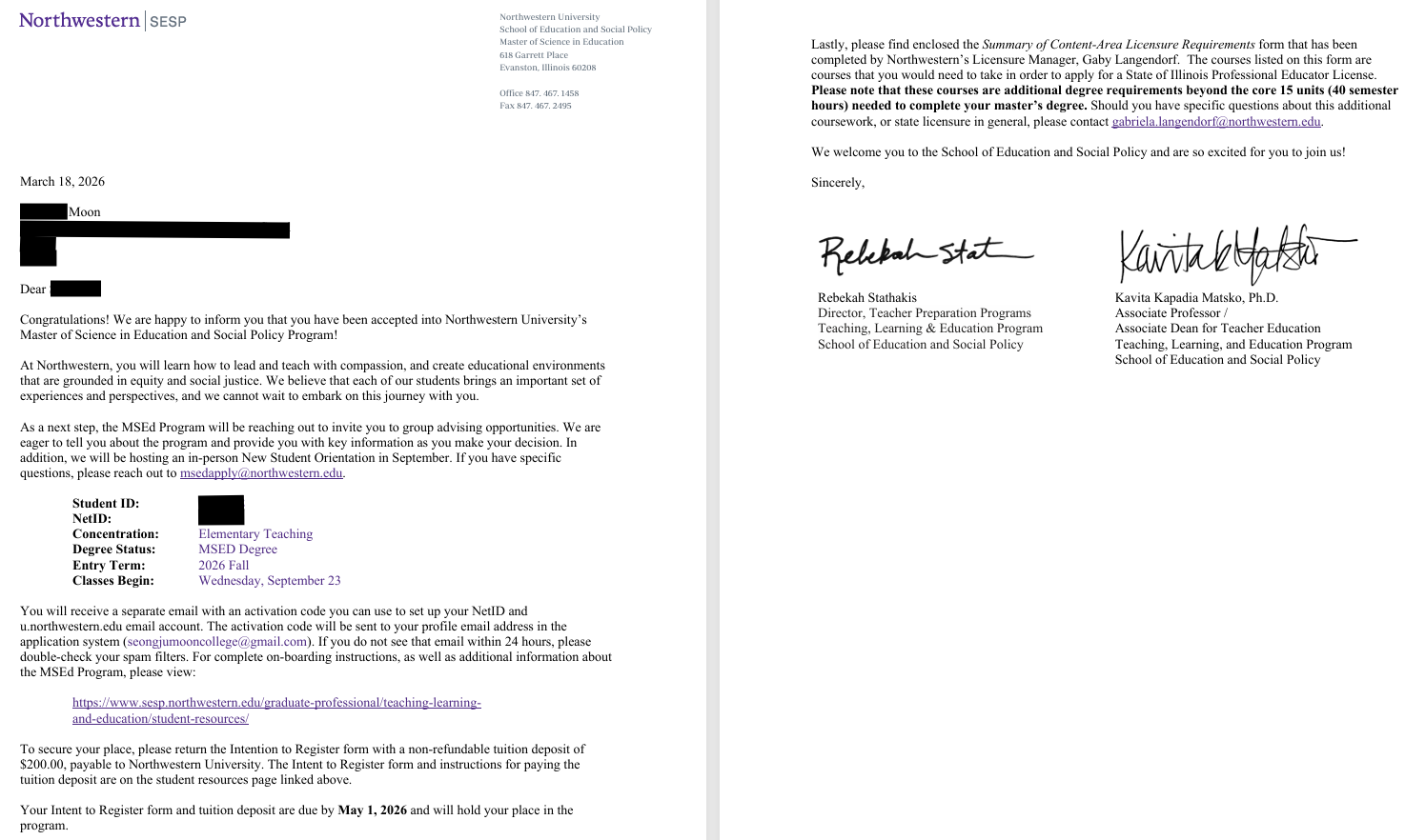 문**님 Northwestern University - MS in Education and Social Policy 합격 축하드립니다.