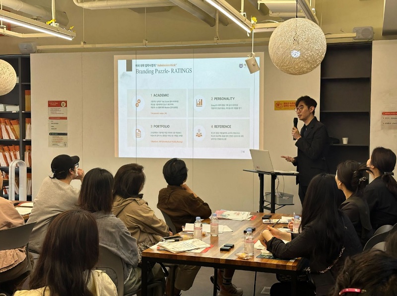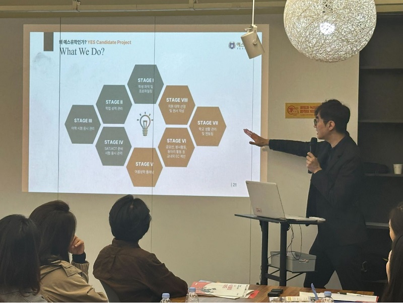 '미국대학의 인기전공 CS전공 타겟팅 전략' 라는 주제로 세션 중인 예스유학 명문대학 컨설팅 남현수 컨설턴트