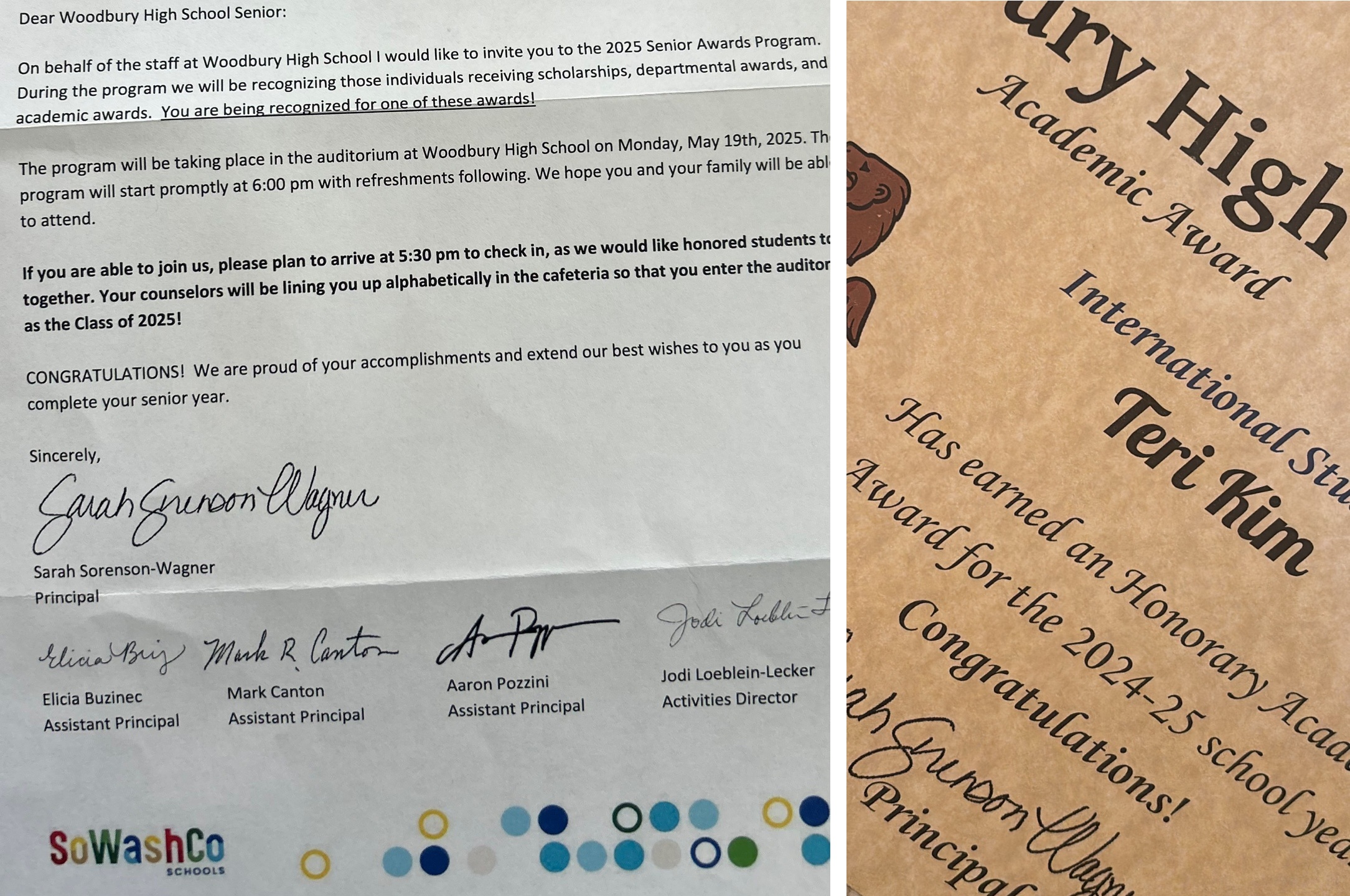 5월 19일 오후 6시에 수여식이 진행된다는 초대장이 집으로 발송되었고,