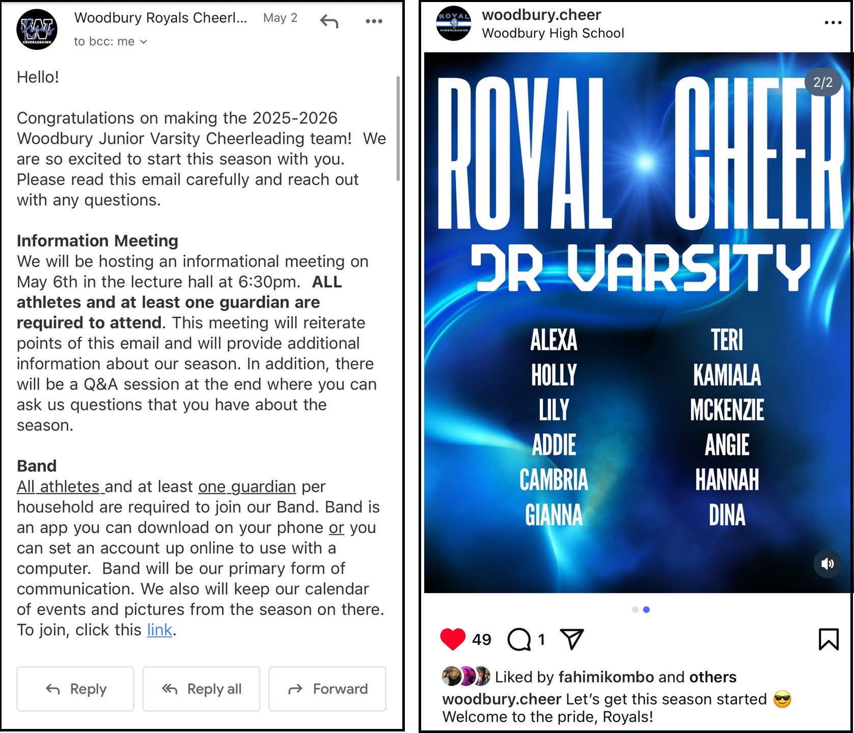 또한, 치어리더 Tryout에도 성공하여 이번에 Junior Varsity Cheer Team의 일원으로 뽑혔다고 합니다.